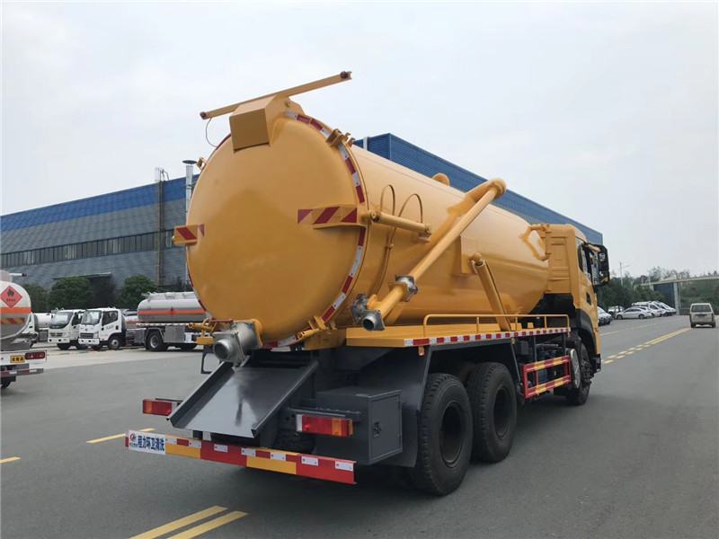 這款東風(fēng)天龍后八輪清洗吸污車前臉?biāo)乃姆椒?,整臺(tái)車以黃色為主黑色為輔,整體看上去大氣低調(diào),時(shí)尚感十足。車的底盤部分采用東風(fēng)DFH1250D4型號二類底盤,發(fā)動(dòng)機(jī)可以根據(jù)用戶的需求進(jìn)行選擇。東風(fēng)天龍清洗吸污車的上裝罐體采用Q235碳鋼制作,分為吸污罐和清水箱,吸污罐容積為16m,水箱容積6m。因?yàn)槲圮嚨奶厥夤ぷ餍再|(zhì),所以罐體進(jìn)行了防腐防銹處理,進(jìn)行防腐處理的罐體比尋常罐體更耐用。