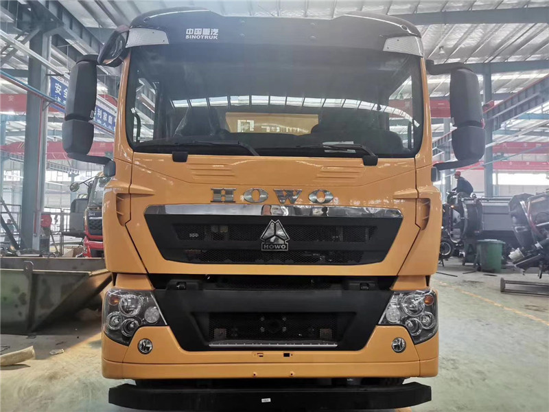 天錦搭載康明斯210馬力,6擋 變速箱 ,后橋9噸,機械座椅,等。這就是豪沃G5X命名的含義,高端、曼5技術、超寬舒適駕駛室。該車的外形尺寸:9250X2550X3500mm,總質量18噸,整備質量12.7噸。罐體及封頭均采用國標8mm碳鋼鋼材制作,罐體總容積15立方,清水倉為5立方,其余為污水倉,內沖球形封頭隔倉,罐體左右兩側消防球閥進水,清水倉內部做防腐處理,清水罐加裝一個小三通球閥用于連接水循環(huán)泵水箱及洗手。