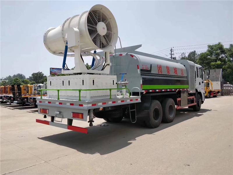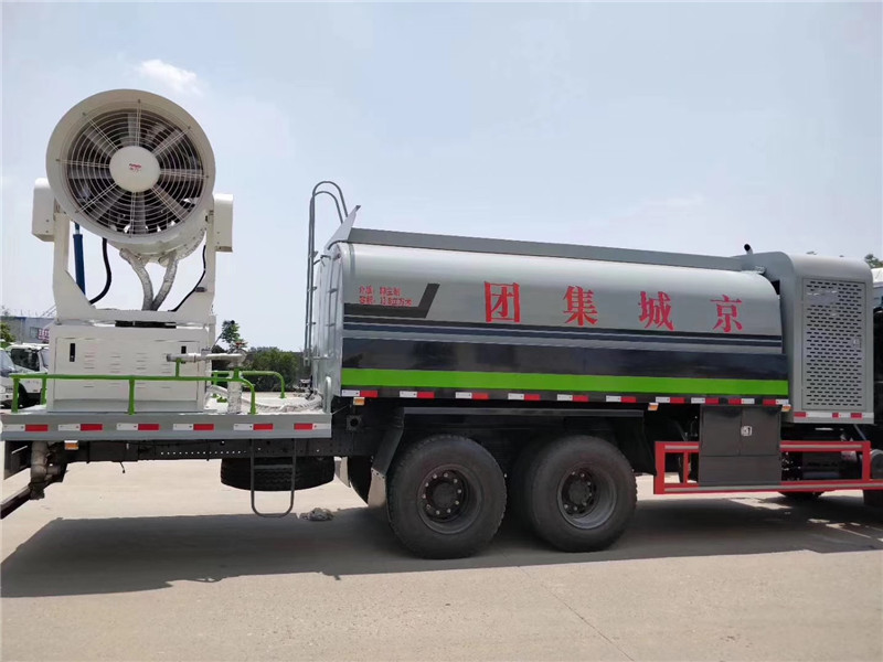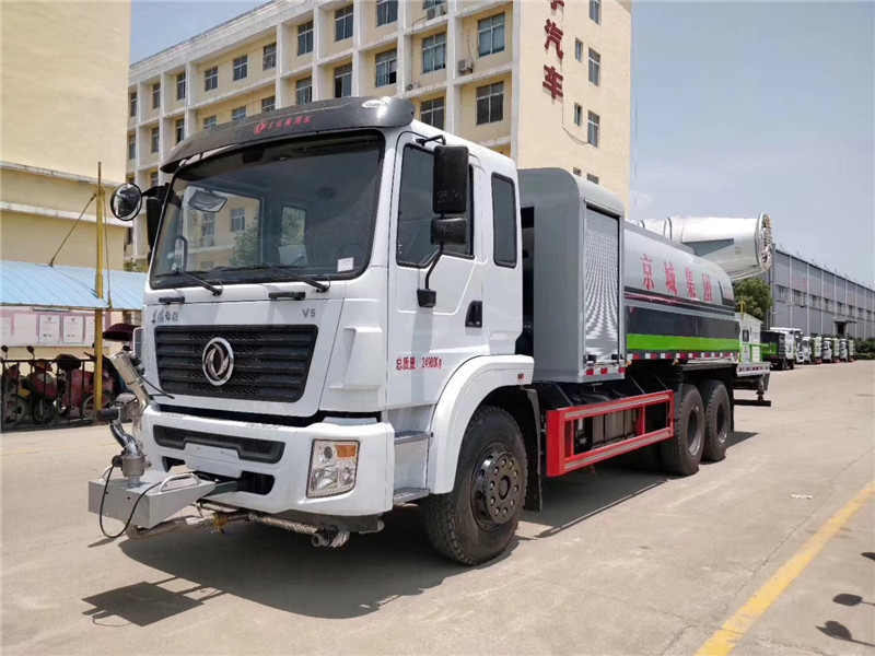 東風(fēng)153后雙橋噴霧降塵車采用東風(fēng)153后雙橋底盤,排半帶臥可前翻駕駛室,康明斯220馬力國五發(fā)動機,陜齒小八檔變速箱,4350+1300mm雙橋軸距,10噸后橋,11.00-20輪胎,原廠abs,帶方向助力,離合助力器,氣剎制動。工作效率高、噴霧速度快;對容易引起塵埃的堆場噴水除塵時,噴出的霧粒細(xì)小、與飄起的塵埃接觸時,形成一種潮濕霧狀體,能快速將塵埃抑制降沉,霧量沉降率可達(dá)95%。