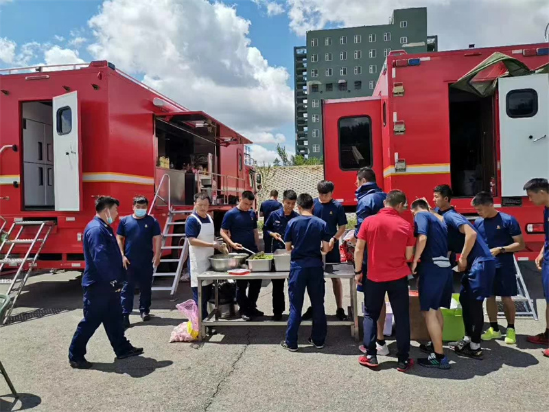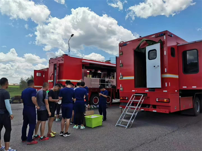 后勤保障車專業(yè)廠可移動飲食保障車交付后部隊官兵使用中。完全滿足200人以上就餐。部隊官兵承擔(dān)各類應(yīng)急救援任務(wù)外,還擔(dān)負(fù)著周邊縣區(qū)急、難、險、重等應(yīng)急救援任務(wù)。特別是地震、山體滑坡和泥石流等重大救援工作,由于參戰(zhàn)人員多、時間長、強度高、消耗大,對部隊?wèi)?zhàn)勤保障能力建設(shè)提出了較高要求,保障工作是否得力直接影響到了整個應(yīng)急救援工作的成敗。
